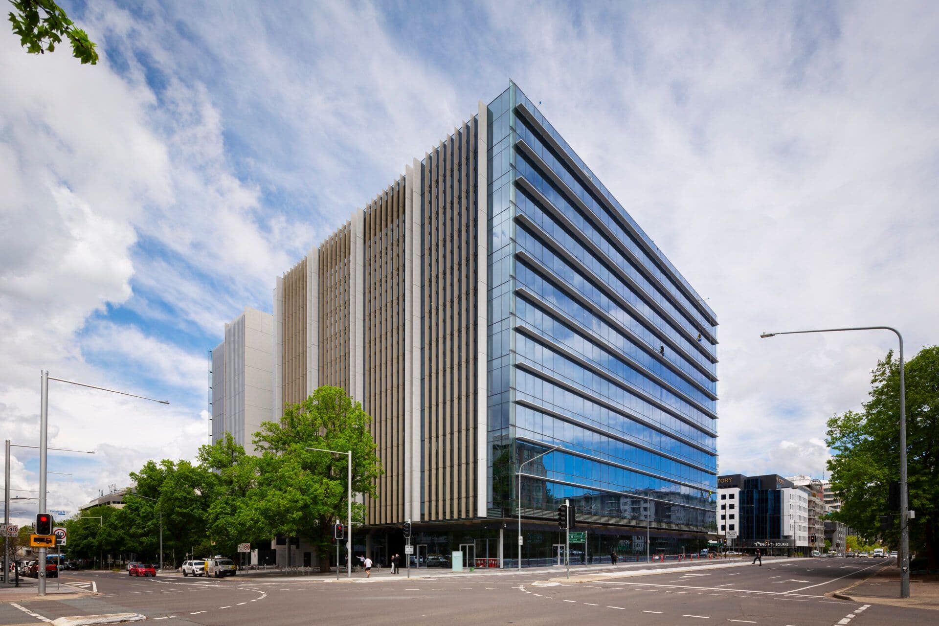 Located between Northbourne Avenue and Mort Street (Section 26) adjacent to the CQ1 building, the award-winning facility offers 35,000 sqm in nett lettable space (NLA) across 11 levels of A grade commercial office accommodation. It encompasses state-of-the-art technology and the highest in environmental credentials including a NABERS energy rating of 6 stars for the base building and 5.5 Star rating for the tenancy, as well as Green Star and Wellness initiatives. Built around a central atrium and incorporating open architecture design principles, its sustainability features include rooftop solar panels, water retention systems and high efficiency fixtures.